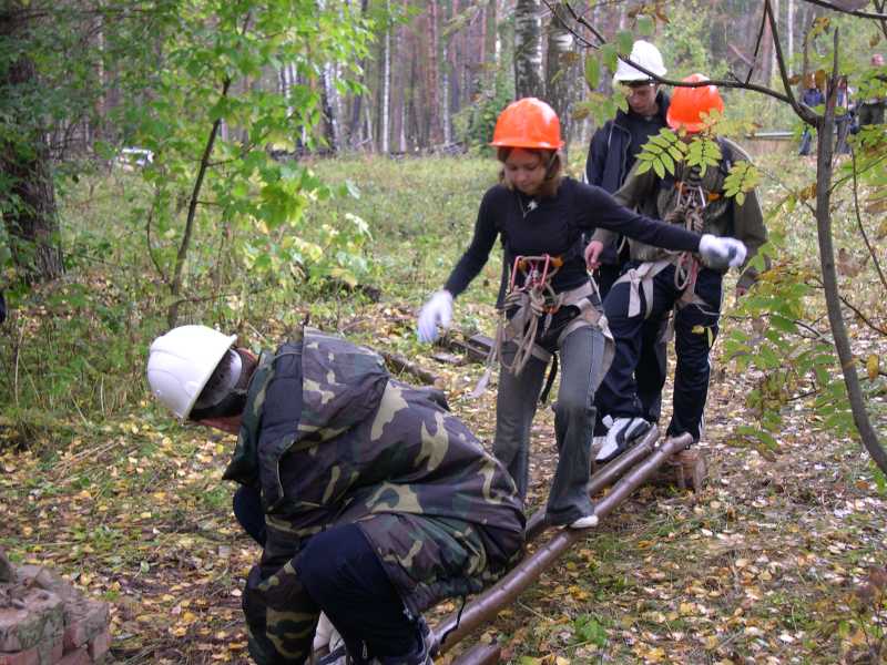 Конкурс «Туристическая полоса». Прохождение болота с помощью жердей.