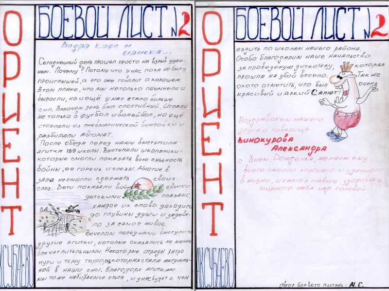 Боевой листок № 1 поискового отряда «Ориент» (Аксубаево).