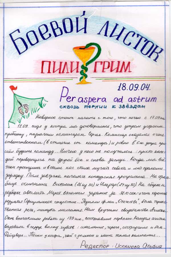 Боевой листок № 1 поискового отряда «Пилигрим» (КГМУ).