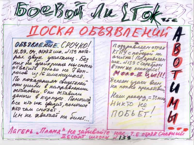 Боевой листок № 1 поискового отряда «Снежный десант» шк. 139 (Казань).