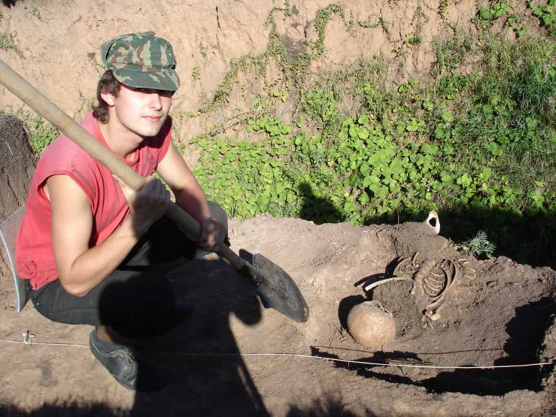 Раскоп скелета булгарского мальчика. 11 век.