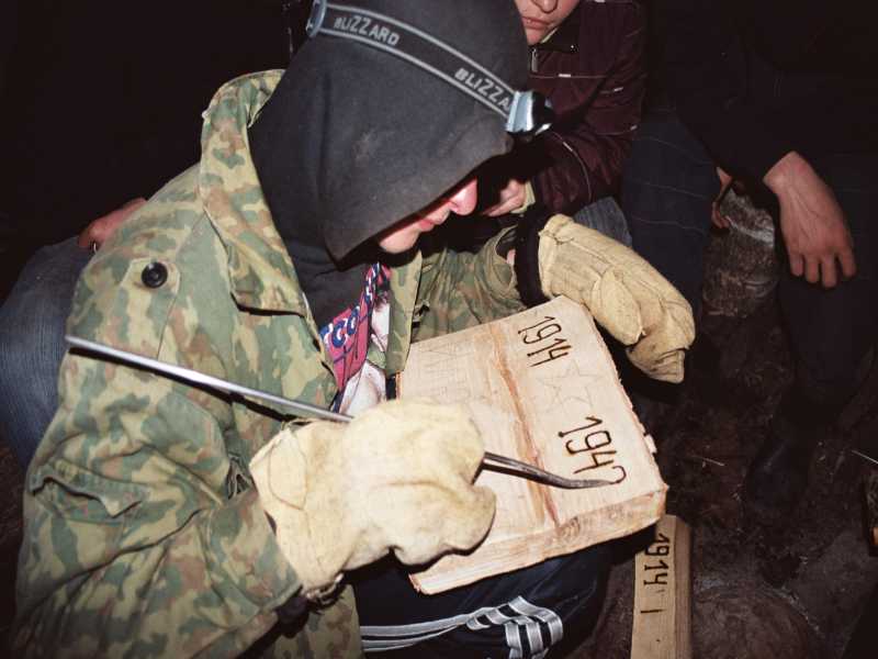 Изготовление временного именного памятного знака на место гибели найденных солдат. Мясной Бор Новгородской области.