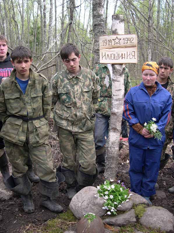 Установка временного памятного знака на месте гибели Илюшина И.Я. Мясной Бор Новгородской области.