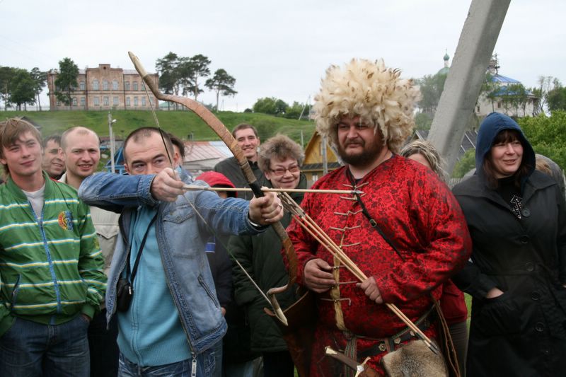 На острове Свияжск участников Конференции встретили члены казанского клуба исторической реконструкции "Витязь".