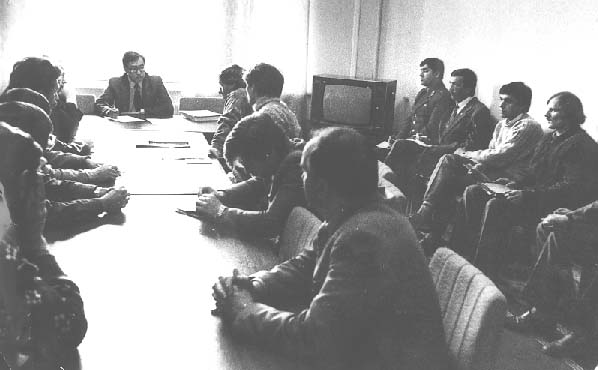 На снимках: Полулегальное захоронение останков на р.Полисть. Август 1986 года. Заседание новгородского ОК ВЛКСМ с участием местных властей, поисковиков из Казани и А.И.Орлова, на котором было принято решение об организации поисковой экспедиции имени Н.И.Орлова. Август 1987 года. Фото В. Ищенко.