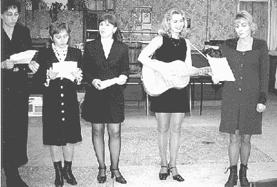 Звучит «Гимн» - слова не надо вспоминать, они сами выпеваются под гитарные аккорды. Несмотря на то, что действующей агитбригады нет, но девчонкам, ветеранам агитбригады, не надо долго раскачиваться: пятнадцать минут репетиции и вот на сцене - композиция, посвященная встрече, написанная Таней Илларионовой, слова о «десантовской» дружбе трогают за душу.