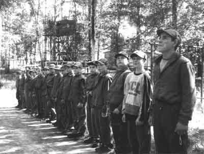 Военная смена в лагере "Отечество" длилась с 10 по 27 июня. Дети приехали с огромными сумками разной одежды, но и половина им не понадобилась, так как все получили стандартную форму. Всех разбили по подразделениям, и ребята увидели своих командиров. Первый же день начался очень тяжело, не успев привыкнуть к лагерю, курсанты получили приказ совершить проверочный марш-бросок. Во время его проведения было много остановок, так как многие приехали неподготовленными физически и быстро устали. Но вскоре все быстро пришли в себя и все остальные дни мы и думать не могли о том, чтобы уехать домой. Дни были до предела заполненными занятиями (строевая подготовка, стрельба, первая медицинская помощь), отражения атак "террористов", разведывательные рейды. Не все получалось, но наши инструктора были терпеливы. Были и дискотеки, как в обычном лагере. Времени же для скуки совсем не было, и во время недолгого личного времени мы с удовольствием отдыхали.