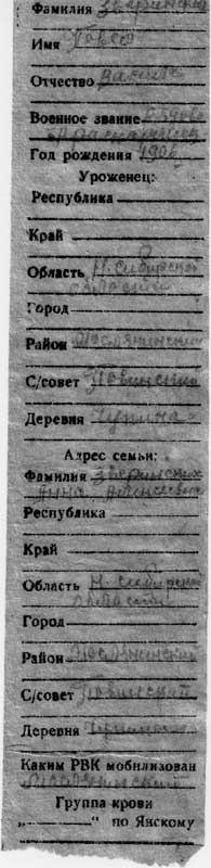 | Здравствуйте боец поискового отряда «Камаз» Роман Савченко! Пишут Вам от Зверинских Валентина Павловича (по его просьбе)! Роман! Получили от Вас письмо, в котором Вы пишете, что Вами найдены останки отца Валентина Павловича. Это было что-то. Взрослый человек (ему сейчас 72 года) плакал. Когда отец ушел на фронт, в 1941 году, Валентину было всего семь лет, многое он не помнит. В семье Зверинских Павла Васильевича была жена Анна Алексеевна и пятеро детей: два сына и три дочери. Павел Васильевич работал в колхозе на разных работах, в основном связанных с лошадями: пахал землю, отвозил сено от комбайнов. Павел Васильевич был очень трудолюбивым и добрым человеком (как следует из воспоминаний односельчан). Жена его тоже работала на разных работах в колхозе. За время войны в семье Павла Васильевича осталось двое детей: дочь Екатерина и сын Валентин, а остальные умерли. В 1942 году Павел Васильевич приезжал домой на костылях по ранению ноги. Дома был не долго, а потом снова на фронт. Больше от него ничего не было. Жена, Анна Алексеевна, считалась вдовой солдата. Свои последние годы жила у дочери Екатерины и умерла в 1988 году. Сама Екатерина тоже уже умерла, в 2002 году. Сын Валентин Павлович живет в своей родной деревне Чупино Маслянинского района Новосибирской области. Сейчас на пенсии и тяжело болеет. От отца у него осталась только одна фотография. Роман! Какое великое дело Вы делаете. Низко Вам кланяемся. Своим благородным трудом Вы дали возможность очень многим людям узнать о последних минутах жизни их близких. Огромная благодарность командиру Вашего отряда Николаю Григорьевичу Усанову! Земной Вам поклон!!! Роман! Огромное спасибо за приглашение в Мясной Бор, но по состоянию моего здоровья это не возможно. Еще раз огромное спасибо Вам всем, кто занимается этим святым делом! Дай бог Вам всем здоровья! С уважением и благодарностью от Зверинских Валентина Павловича. До свиданья. |
