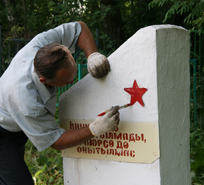 скосили траву, обновили покраску звезды и текста на памятном знаке.