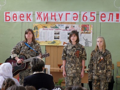 В этой школе работают творческие учителя, воспитывают любознательных детей. Здесь есть свой кружок следопытов, где дети изучают историю деревни, составили Книгу Памяти об односельчанах, погибших на войне, участниках войны, тружениках тыла. Тронули нас слова педагога-организатора Алии Габдулловны Садриевой: «127 наших односельчан считались пропавшими на этой войне без вести, сегодня их стало на одного меньше…». Наше мероприятие получилось совместным: выступление агитбригады «Снежного десанта» казанской гимназии №139 перемежалось выступлениями учеников школы со стихами и песнями о войне.