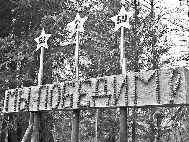 Его мало кто видел, этот «памятник для своих». Для своих - потому что «чужие здесь не ходят». Чтобы до него добраться, надо сначала ехать на электричке от Новгорода, потом идти по заболоченному лесу. Если повезет - ехать на ГТТ, что подобно катанию на американских горках. И вот, на берегу речушки, в заболоченных новгородских лесах, вы встретите памятник, поставленный в мае 2009 года по инициативе новгородского