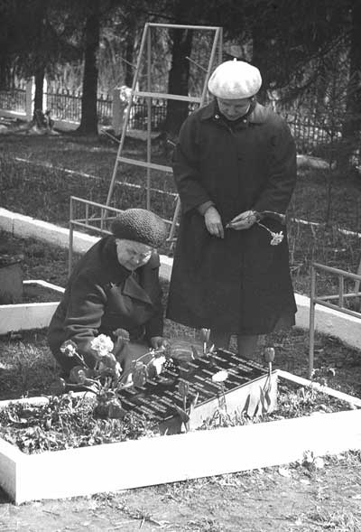 Жена и дочь у могилы сержанта Иванова Б.В. Убит в 1942-м,