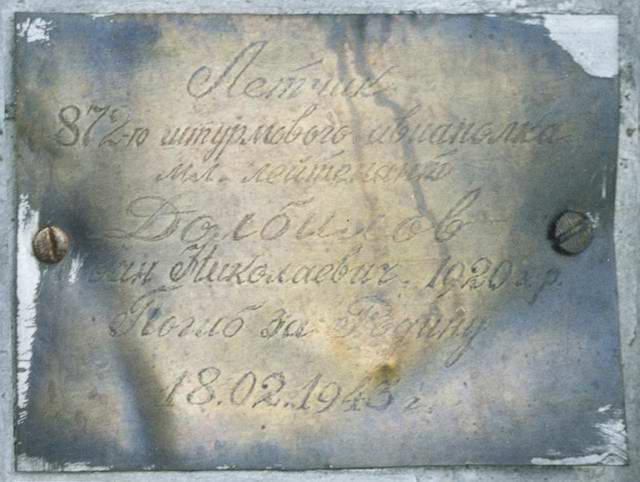 Летчик 872-го штурмового авиаполка 281-й штурмовой авиадивизии 14-й Воздушной армии младший лейтенант ДОЛБИЛОВ Иван Николаевич, 1920 г.р., уроженец: Краснодарский край, город Краснодар, ул. Шаумяна, д. 34/3.