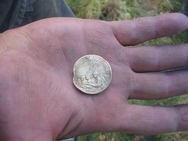 Кроме этого, расширяя диаметр воронки, ребята обнаружили оторванную от планки, сильно помятую медаль "За оборону Ленинграда". Данная находка сильно озадачила, так как эта медаль была утверждена только в декабре 1942 года, а в войсках стала появляться не ранее мая 1943 года. Значит, к обнаруженному нами самолету экипажи морской авиации не имели никакого отношения.