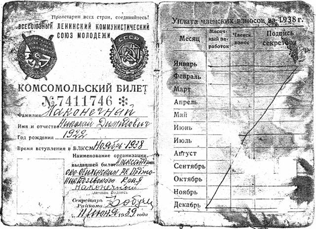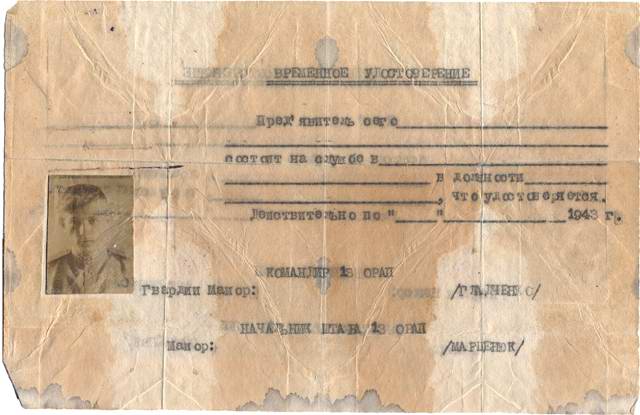 Временное удостоверение Н.Д.Наконечного, найденное при останках.