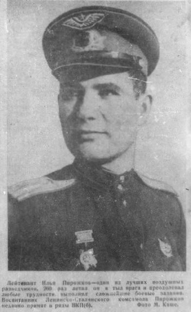 Илья Сергеевич Пирожков - один из лучших воздушных разведчиков. Фотография из газеты "Боевая тревога" от 19 октября 1944 года.