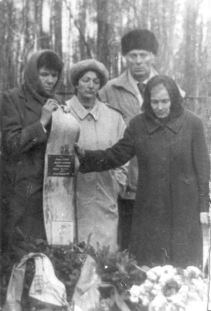 Сразу же с вокзала мы все вместе отправились в Озерки в Шуваловскую церковь, там рядом в годы войны располагался аэродром 13-го ОРАП. Отец Михаил, священнослужитель этой церкви, провел обряд отпевания - панихиду по погибшему в 1943 году Николаю Наконечному. А 9 ноября 1990 года в городском парке "Сосновка" на воинском мемориале погибшим летчикам, состоялась торжественно-траурная церемония захоронения останков летчика Наконечного Николая Димидовича. На его могиле мы установили кок винта с одной лопастью от его самолета. На лопасти прикрутили табличку с данными Николая.