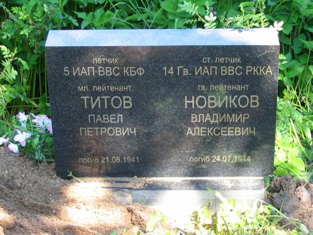 Старший летчик 14-го гвардейского истребительного авиаполка 275-й истребительной авиадивизии 13-й Воздушной армии Ленинградского фронта гвардии лейтенант НОВИКОВ Владимир Алексеевич, 1920 г.р., уроженец: РСФСР, Орловская область, город Брянск (по другим сведениям: Владимирская область, город Ковров). Отец Алексей Михайлович, проживал: РСФСР, Челябинская область, город Усть-Катав, ул. Гнусарёва д. 24. Мобилизован Брянским ГВК в 1940 году.