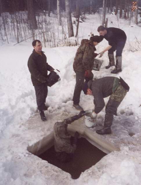Подготовка к подъему самолета В.А.Новикова.Декабрь 2003 года.