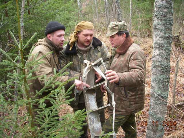 Николай Михайлов, Илья Прокофьев и Ильдар Бикбаев исследуют найденные обломки самолета.