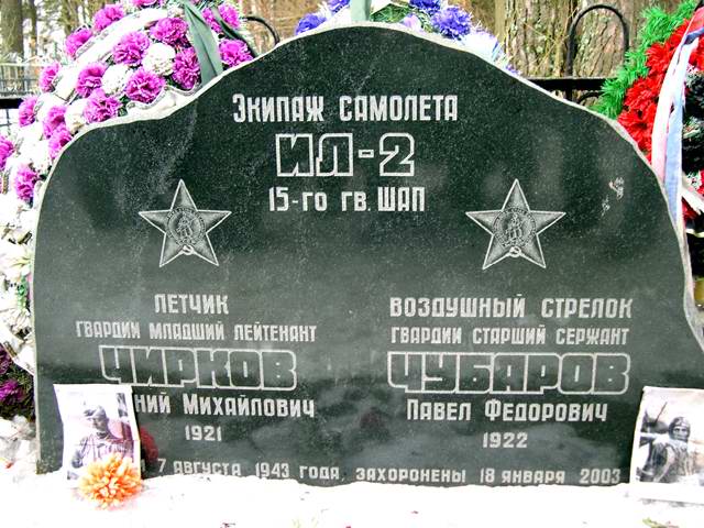 По установленному номеру мотора были проверены документы Центрального архива Министерства обороны РФ. Согласно архивных документов было установлено: самолет Ил-2 с мотором с30462, сбит зенитной артиллерией противника 7 августа 1943 года в районе Анненское; экипаж: летчик гвардии младший лейтенант Чирков Е.М. и воздушный стрелок гвардии старший сержант Чубаров П.Ф.