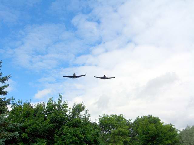 Отдавая почести погибшим летчикам от сегодняшних авиаторов, над траурной церемонией пролетели самолеты Як-52.