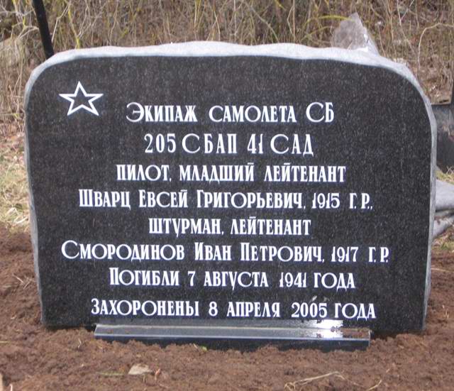 - в Приказах Управления кадров ВВС Красной Армии об исключении из списков Красной Армии - список офицеров Уральского Военного округа: младший лейтенант Шварц Евсей Григорьевич, пилот 205 СБАП погиб 7 августа 1941 года, 1915 г.р., чл. ВЛКСМ, в КА с 09.01.1941 г.