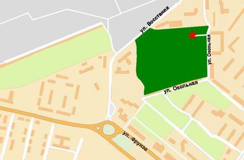 Окольное кладбище находится в Кировском районе Казани на пересечении улиц Окольная, Сабан и Восстания, участок воинских могил — в северо-восточной части кладбища. Здесь похоронены воины, умершие в разных эвакогоспиталях Казани, военнослужащие Казанского гарнизона и других воинских частей, пребывавших в городе в 1941-1945 годах. В архивных документах госпиталей о погребениях воинов кладбище упоминается под названиями кладбище Кировского района, Ленинско-Кировское кладбище, кладбище №2 Кировского района, кладбище Слободы Восстания, Слободское кладбище.
