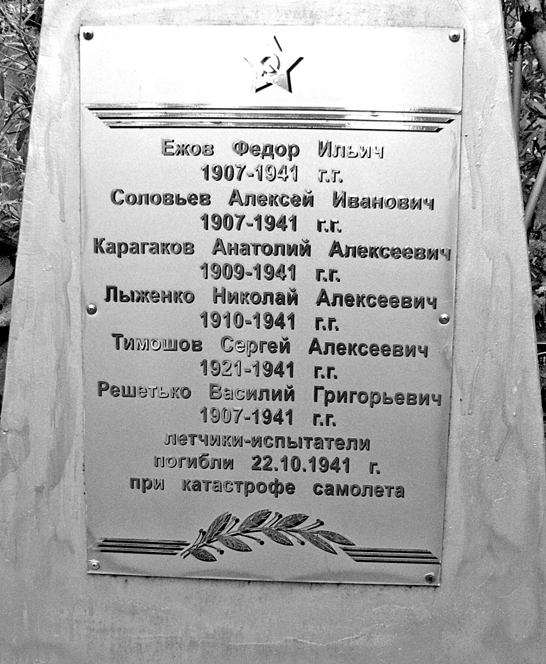 В составе экипажа погибли: летчик, Ежов Ф.И., бортмеханик Караганов А.А., ведущий инженер Соловьев А.И., техник Тимашков (Тимошов) С.А., инженер Лыженко Н.А., Решетько В.Г.