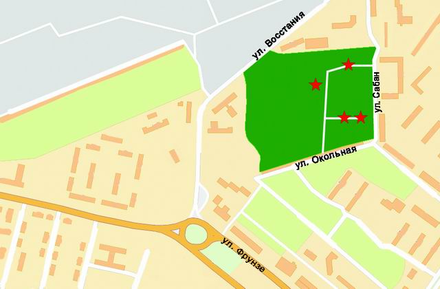 Окольное кладбище находится в Кировском районе Казани на пересечении улиц Окольная, Сабан и Восстания, воинские захоронения — в восточной части кладбища. Здесь похоронены воины, умершие в разных эвакогоспиталях Казани, военнослужащие Казанского гарнизона и других воинских частей, пребывавших в городе в 1941–1945 годах. В архивных документах госпиталей о погребениях воинов кладбище упоминается под названиями кладбище Кировского района, Ленинско-Кировское кладбище, кладбище №2 Кировского района, кладбище Слободы Восстания, Слободское, Пороховое кладбище.