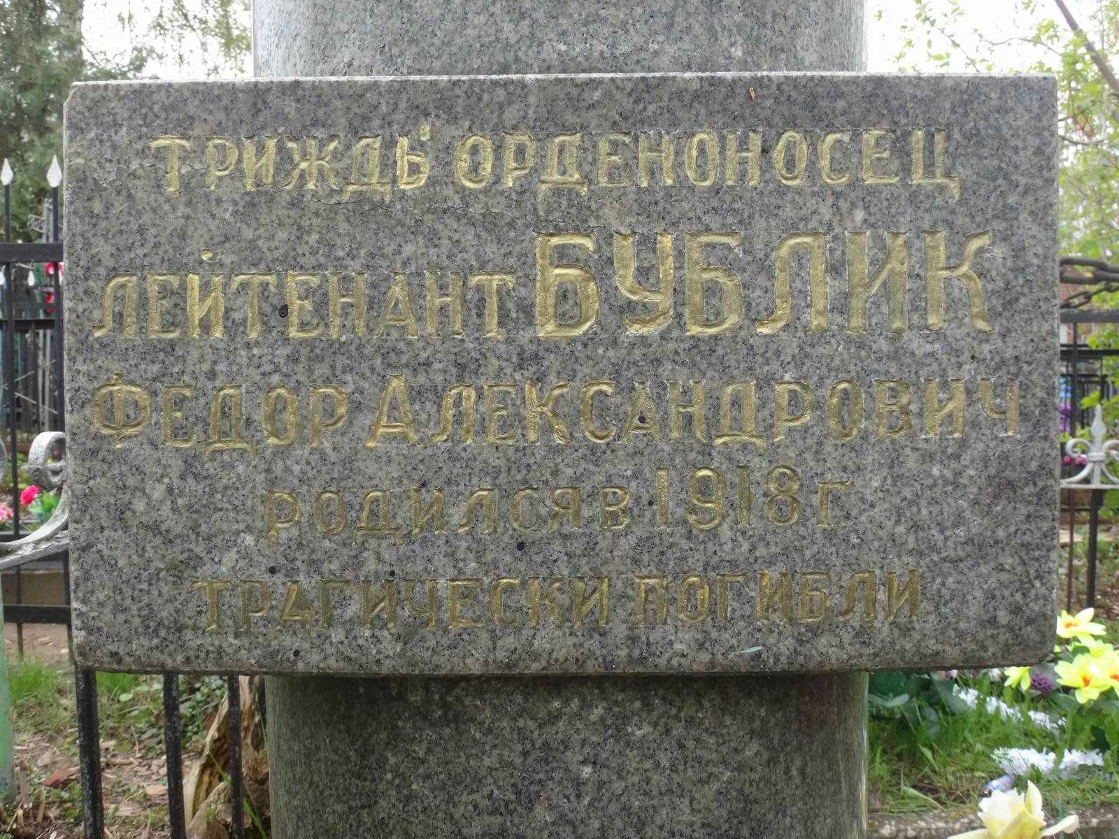 1918 г.р. Уроженец: Украинская ССР, Запорожская область, Иванковский район, село Протасовка. Отец Бублик Александр Дмитриевич, проживал: Крымская АССР, город Симферополь, Зуйский район, село Розенталь. Кадровый, в РККА с 1939 года.