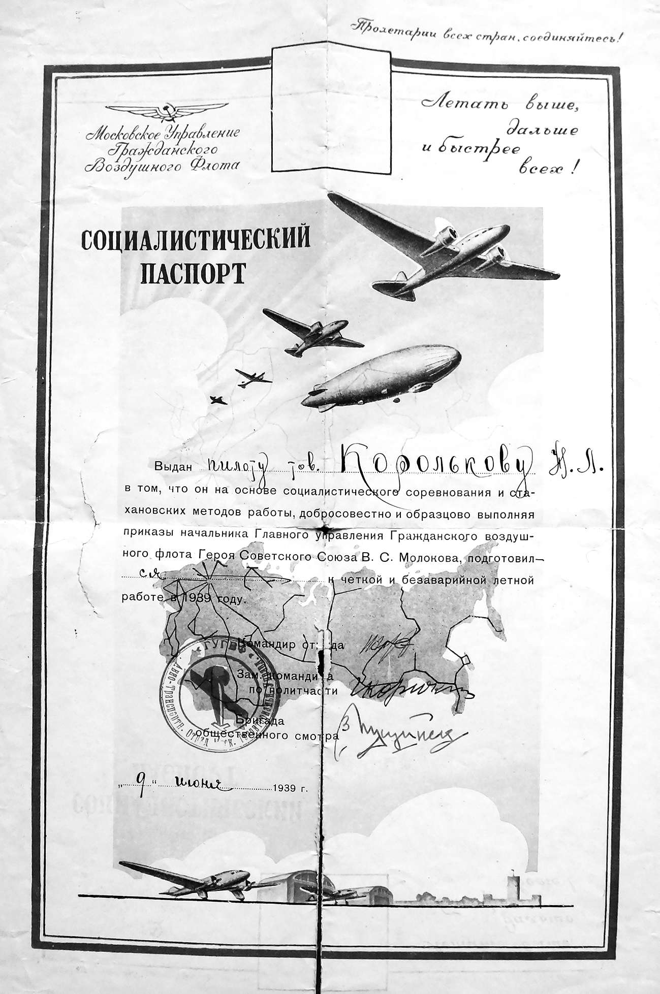 В 1939 году работал пилотом в авиатранспортном отряде Московского территориального Управления главного управления ГВФ.