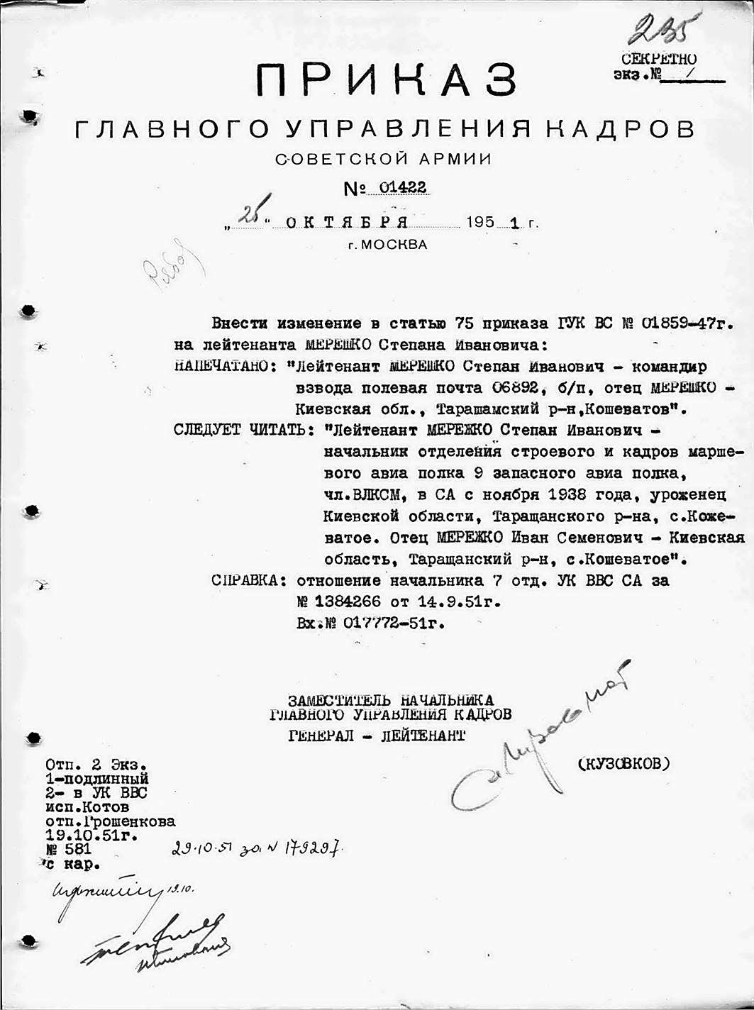 1920 г.р. Уроженец: Украинская ССР, Киевская обл., Таращанский р-н, с.Кожеватое. Отец Мережко Иван Семенович.