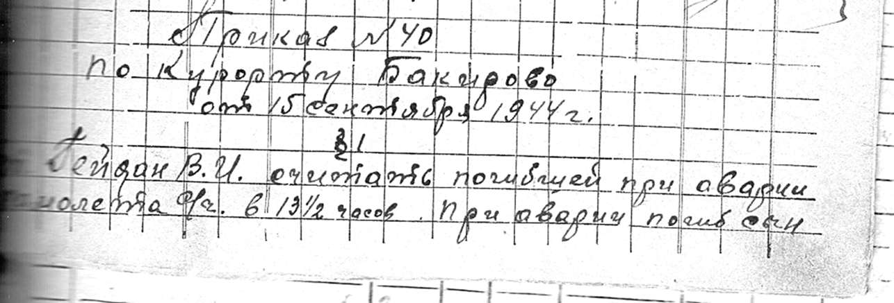 Обстоятельства данной катастрофы отражены в документах Российского государственного архива экономики и архива курорта «Бакирово»:
