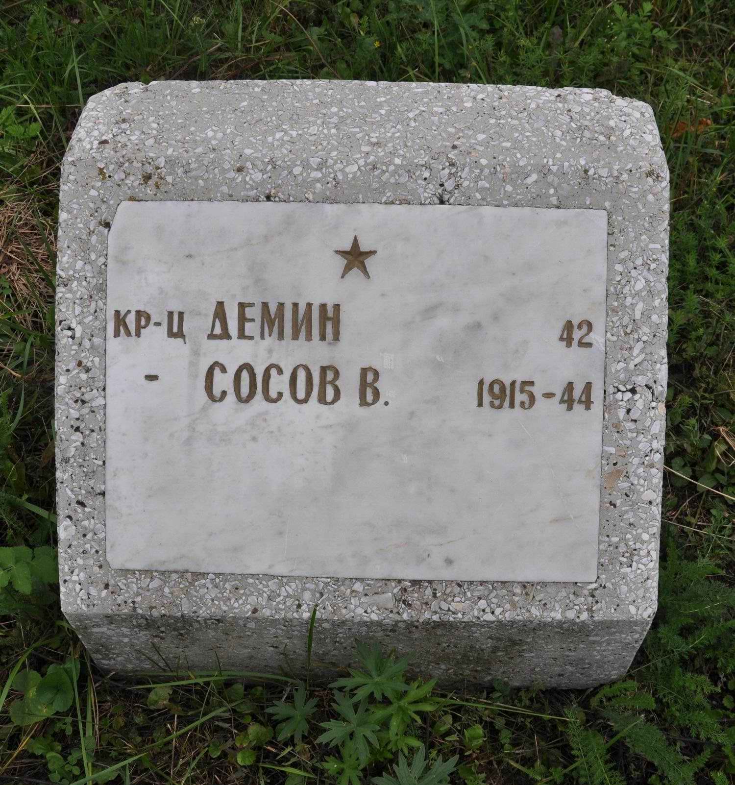 Для сведения: в приказе ГУК КА учтен как Сосов, командир взвода в/ч 10267, погиб при исполнении служебных обязанностей. В различных архивных документах указывается разный год рождения: в донесении 9 ЗАП о катастрофе записан год рождения как 1921, в медицинской карте, приложенной к акту расследования катастрофы, – 1915, а в учетно-послужной карточке – 1918.