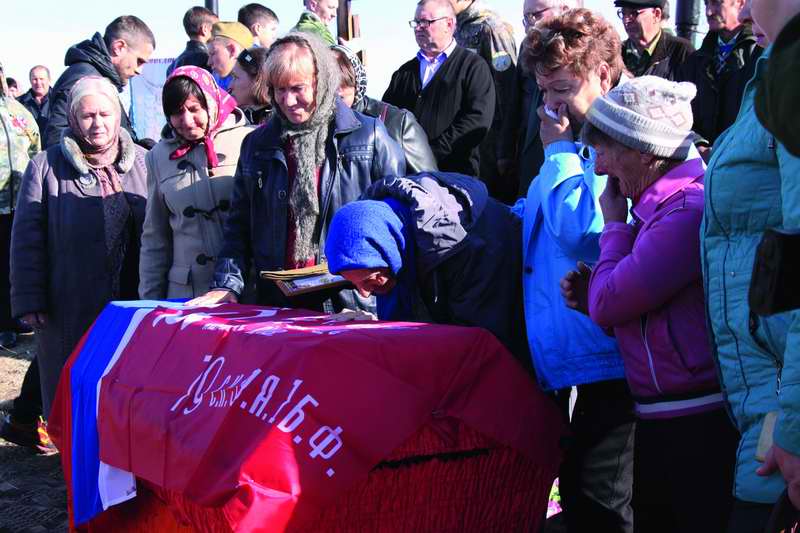 Родные у гроба с останками красноармейца Климова Павла Михайловича.