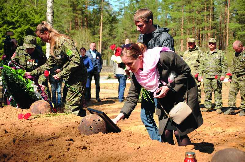 Внучатая племянница красноармейца Силкина Аркадия Алексеевича на церемонии захоронения его останков.
