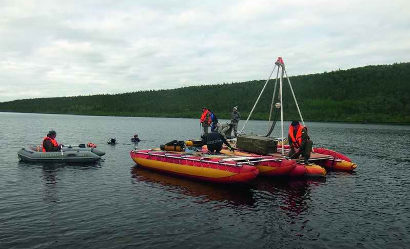 и останков членов экипажа со дна озера Среднее Ваенгское. Мурманская область. 2017 г.Фото: РОМО «Объединение «Отечество» Республики Татарстан.