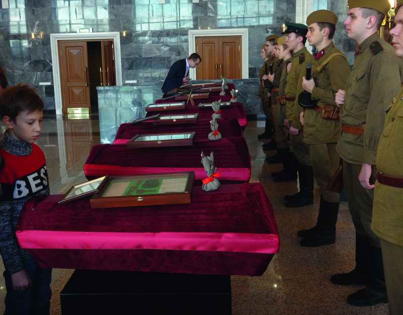 Передача поисковым отрядам России останков восьми красноармейцев,