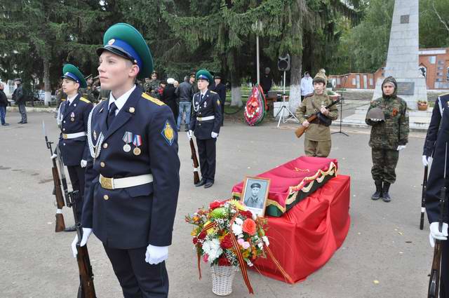 После обращения руководителя поискового отряда "Челны" Наиля Каюмова в администрацию и военный комиссариат Тетюшского района, и по согласованию с родными, было принято решение об организации торжественного захоронения останков погибшего воина на его Родине в городе Тетюши.