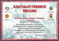 1-3 декабря в г. Казань состоялся VIII Межрегиональный Фестиваль поисковой песни и агитбригад «Ровесников следы - 2017». |