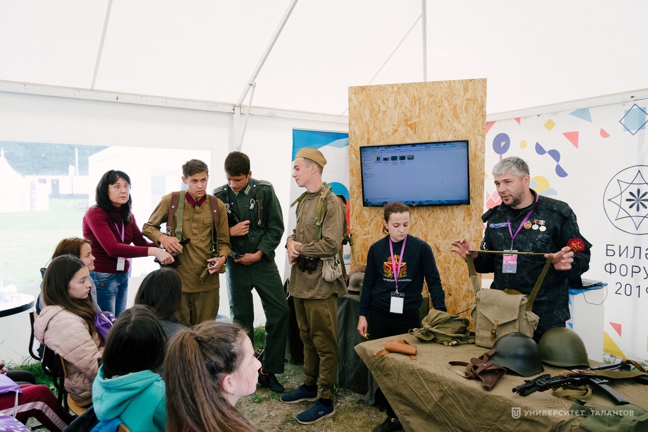Участники МШТ BILER FORUM поучаствовали в мастер-классе на тему «Военно-патриотическое воспитание молодёжи», где ребята научились различать советские и немецкие каски, пулемётную ленту, магазин от автомата, гильзу от артиллерийского снаряда. В конце мастер-класса участники узнали конструкцию советских ремней и состав обмундирования, которое смогли примерить на себя.