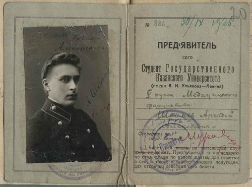 Находка в фондах Научной библиотеки Казанского федерального университета раскрывает страницы становления военврача А.А.Шкляева, останки и орден которого были найдены поисковиками Татарстана. |
