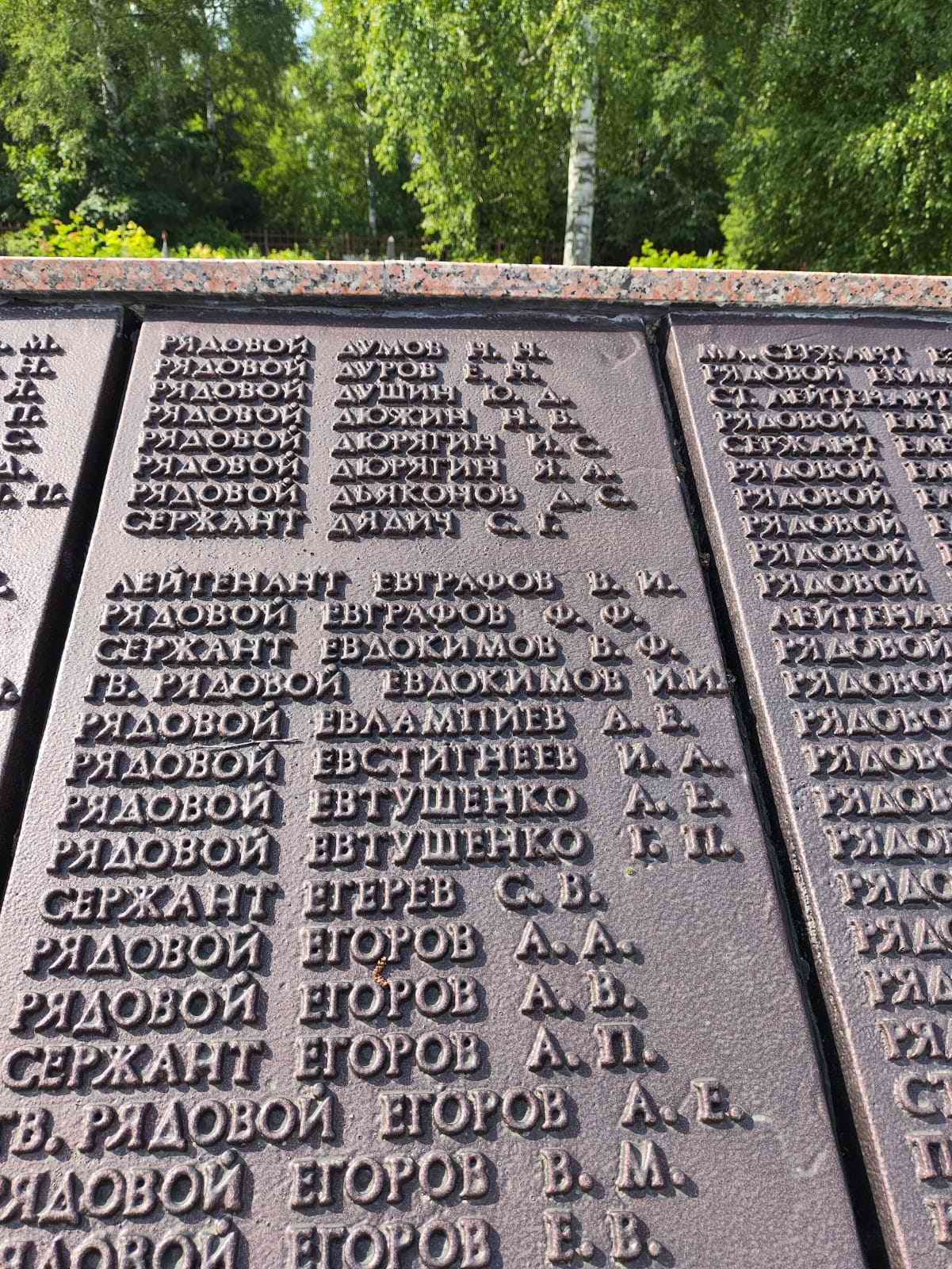 Эти сведения подтвердила руководитель поискового отряда «Малая Родина» из города Ярославля Елена Евгеньевна Евграфова, которая посетила Леонтьевское кладбище и прислала в наш адрес фотографии, с именных плит захороненных воинов, на которых увековечены имена В.И.Евграфова и Солдатченко.